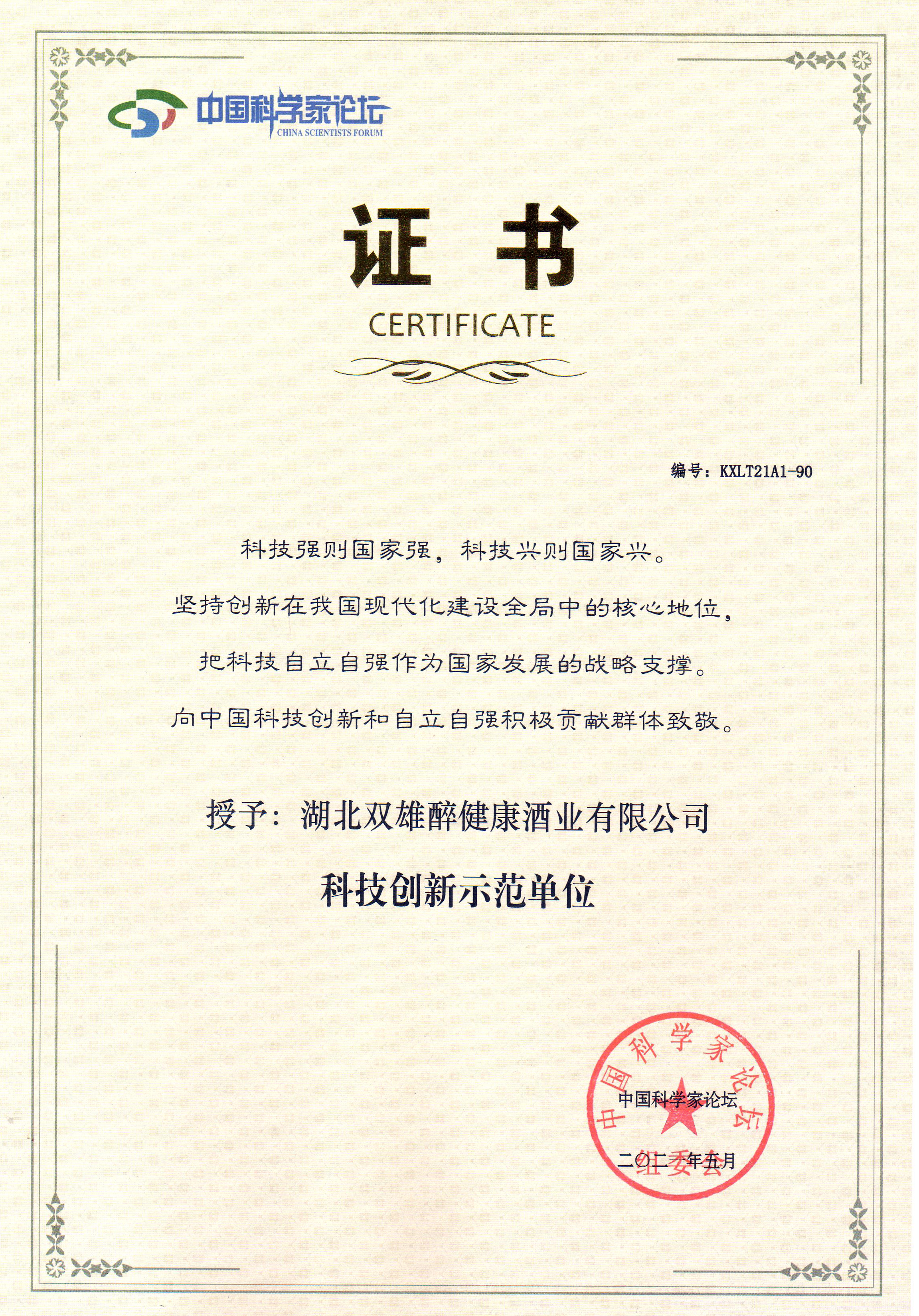 被第18屆科學(xué)家論壇授予科技創(chuàng)新示范單位