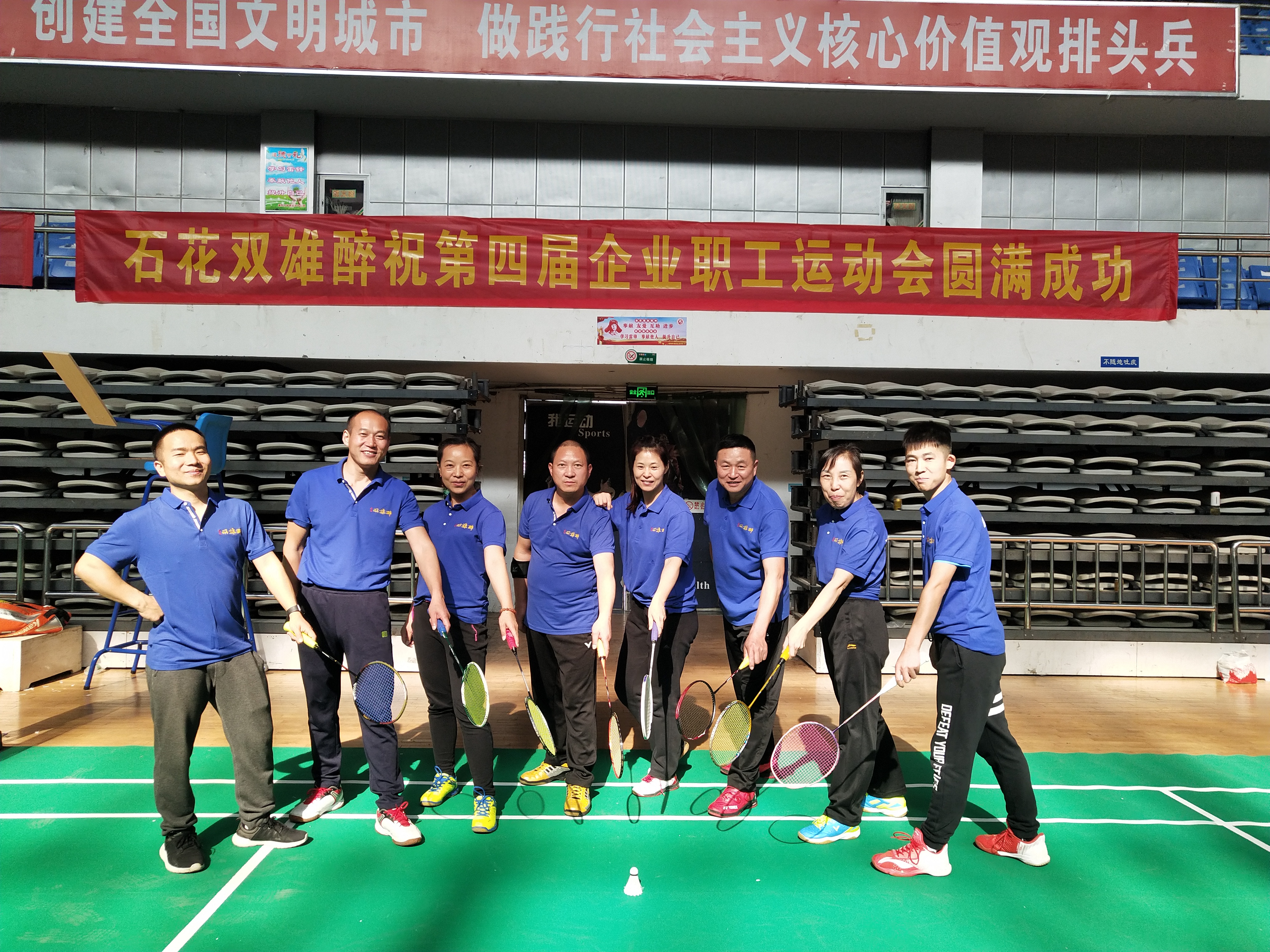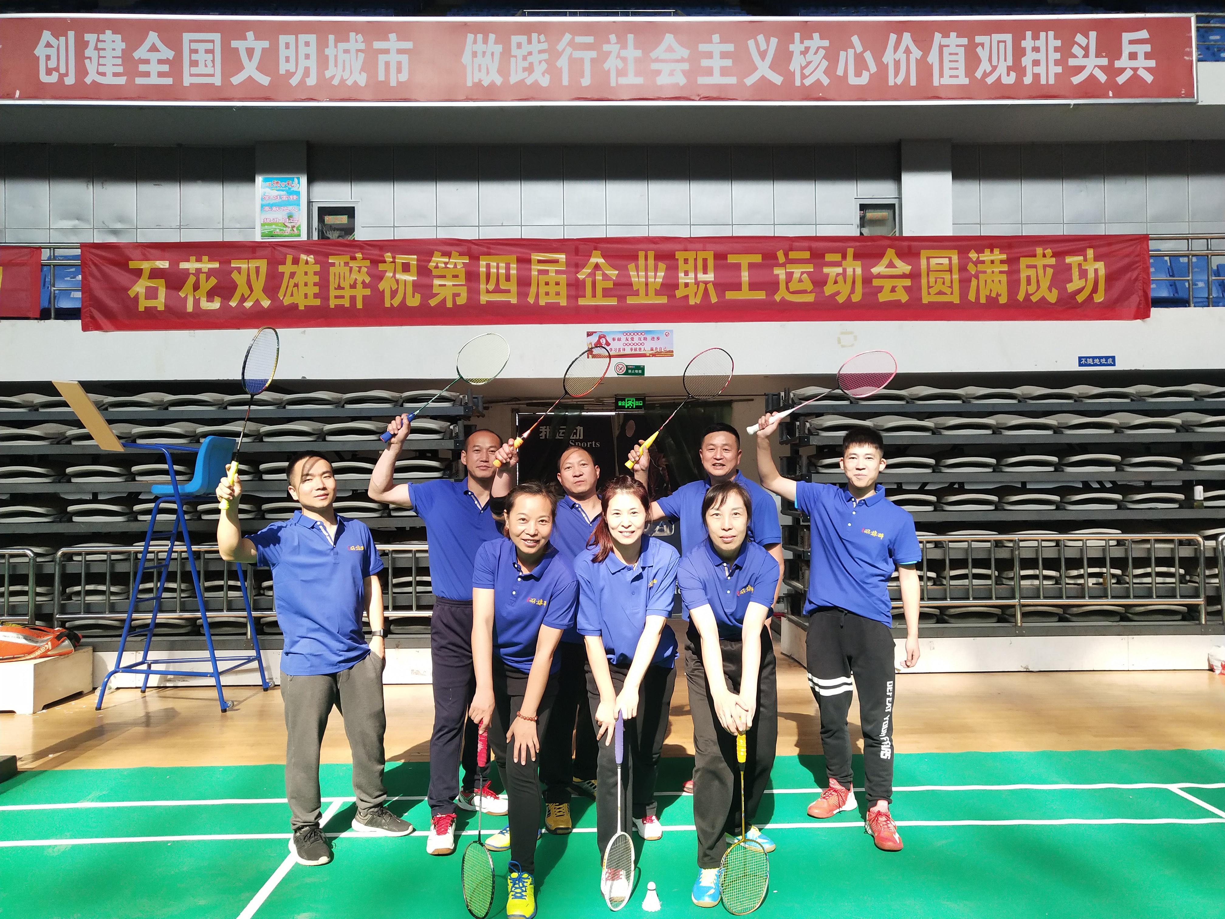 來自全市50支代表隊(duì),500多名運(yùn)動(dòng)員參賽,雙雄醉健康酒業(yè)組隊(duì)參加此次大賽羽毛球分賽,與各大企業(yè)隊(duì)同場(chǎng)競(jìng)技,互動(dòng)交流。