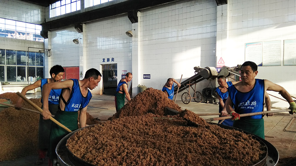 上午,團隊來到石花酒業(yè)產(chǎn)業(yè)園,在工作人員的引導(dǎo)下,一進入釀酒車間,VIP客戶們就被熱鬧的生產(chǎn)場景所吸引,身形矯健的工人師傅們正揮舞著生產(chǎn)工具,干勁十足,動作優(yōu)美,整個過程精心釀制,獨具匠心,雙雄醉健康白酒就在此釀造。工作人員介紹,石花霸王醉和石花雙雄醉基酒都在這里高品質(zhì)釀造,所以說,石花雙雄醉健康酒與霸王醉同宗同源,恰如親生兄弟,血統(tǒng)高貴,氣質(zhì)不凡。在釀造雙雄醉酒的過程中,在傳統(tǒng)地缸發(fā)酵、大曲清香工藝基礎(chǔ)上,融合了黑小麥、葛根素、羅漢果等對人體有益的多種原材料,酒體中具有SOD、葛根素等豐富的健康因子,口感與飲后反應(yīng)獲得普遍贊譽。