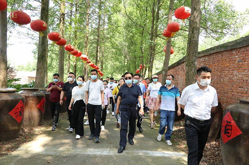 下午團(tuán)隊(duì)來(lái)到中國(guó)生態(tài)白酒莊園,這里樹(shù)木蔥郁,植被茂盛,山水環(huán)繞,曾是神農(nóng)遍嘗百草,試植五谷之地。因生態(tài)環(huán)境優(yōu)美,非常適合微生物的生長(zhǎng)繁殖,石花原酒就在這里儲(chǔ)藏。