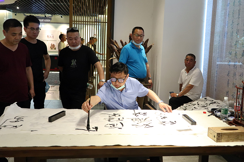 揮灑天地的藝術(shù),隨團(tuán)全國(guó)著名評(píng)酒大師鄭新濤在品牌館留下濃墨重彩的墨寶!