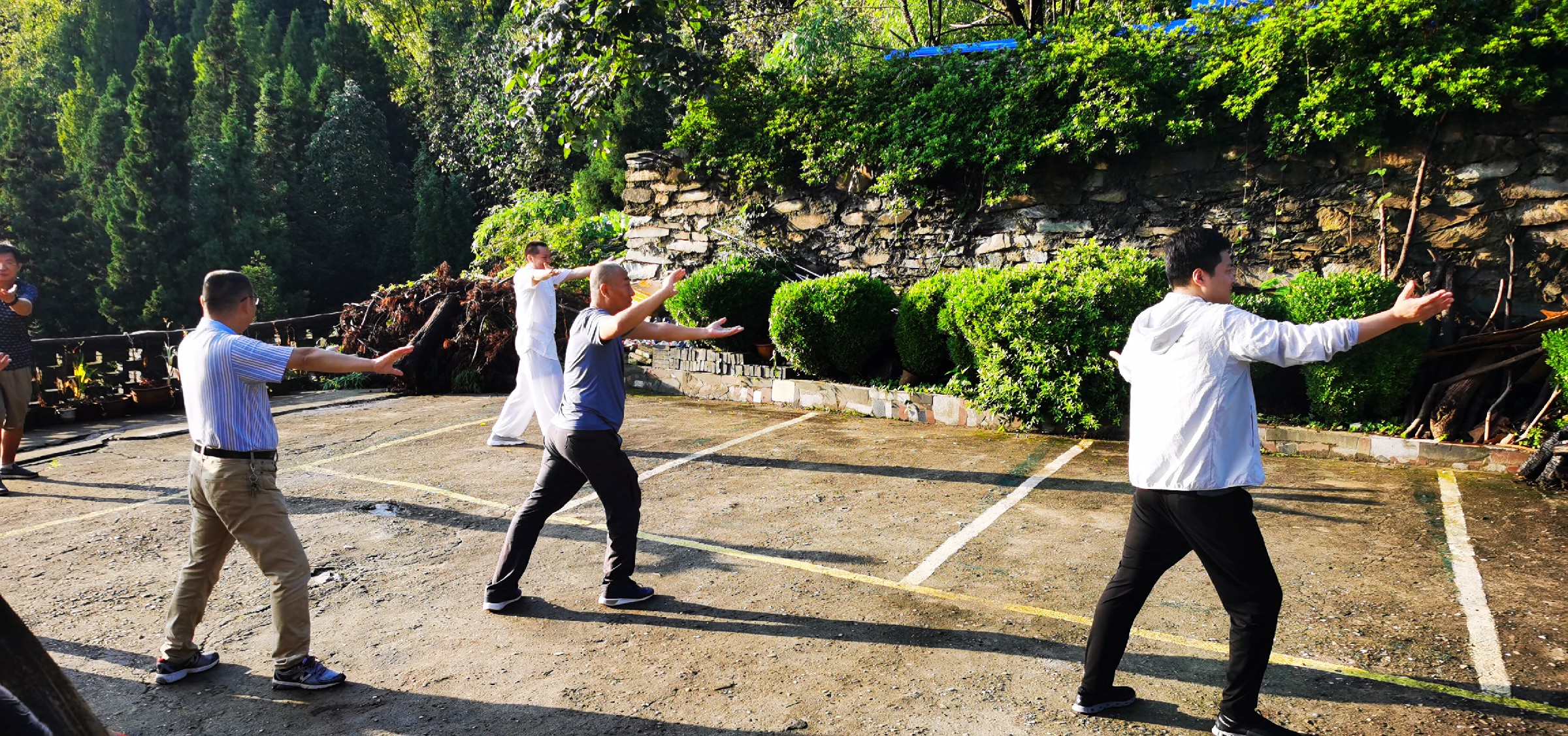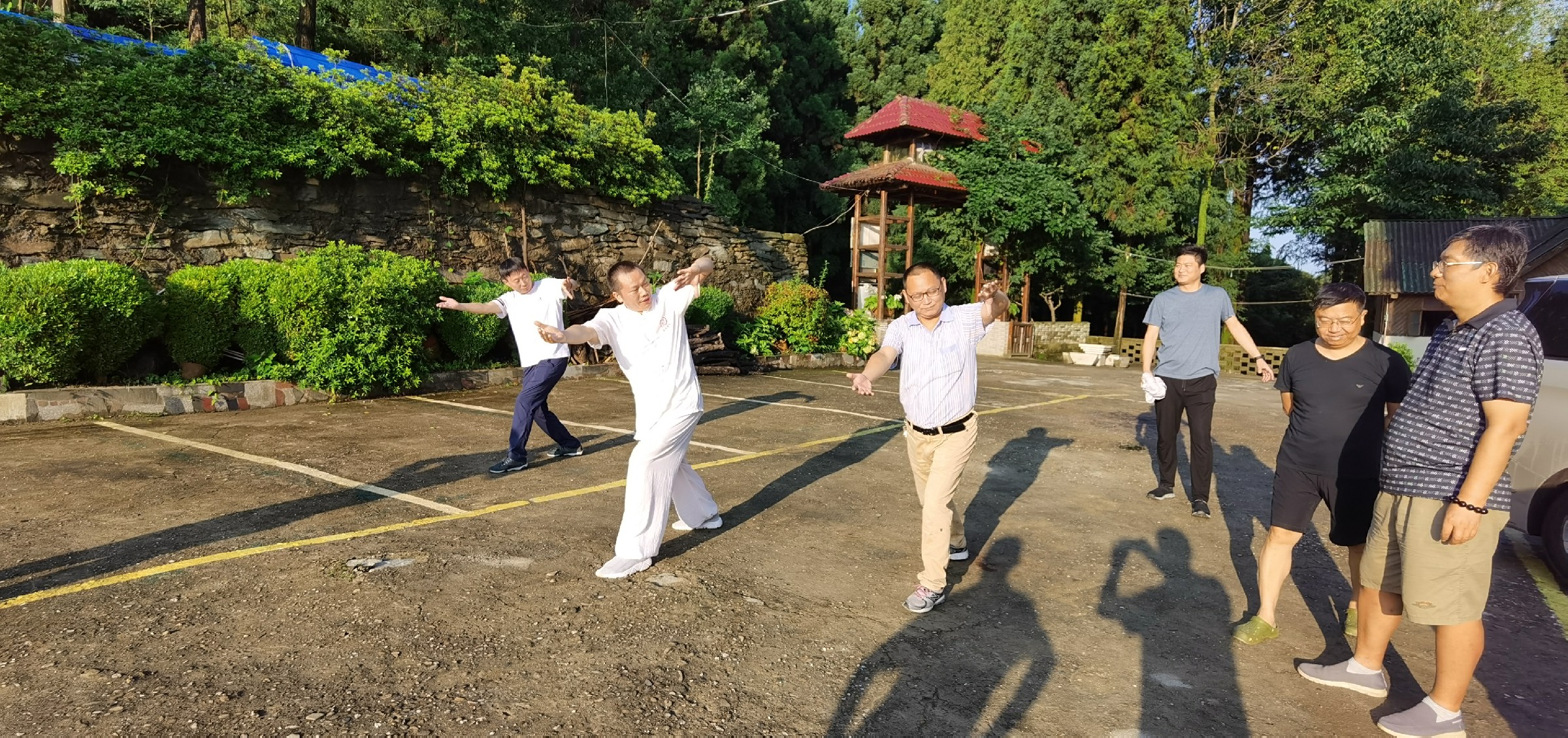 晚上,企業(yè)家朋友們下榻薤山度假山莊,薤山號稱中國南避暑山莊,常年溫度適宜,森林覆蓋率高,是盛夏避暑的好地方。第二天清晨,迎著微微涼風(fēng),聽著愉悅的鳥叫,在天然氧吧中,總經(jīng)理鄭書軍陪同企業(yè)家朋友們一起練習(xí)武當(dāng)太極養(yǎng)生功。