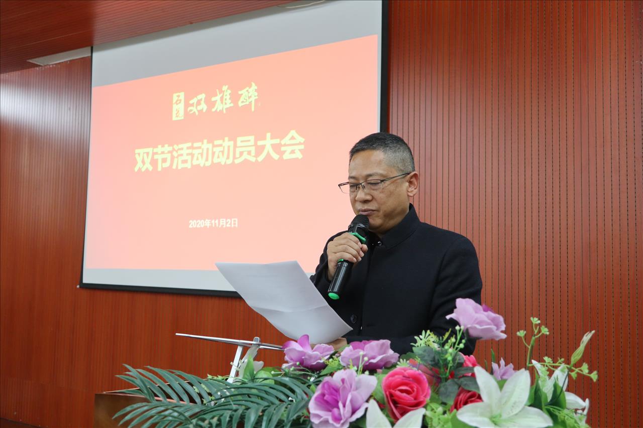 雙雄醉健康酒業(yè)總經(jīng)理鄭書軍作雙節(jié)活動動員報告,鄭總指出,在上半年經(jīng)營工作中,雙雄醉銷售規(guī)模穩(wěn)步提升,品牌影響力逐漸顯現(xiàn),升學(xué)宴活動取得圓滿成功,團隊打造初見成效。經(jīng)營年度下半年,有機遇也有挑戰(zhàn),希望每個“雙雄醉”人能夠提高主體意識、責(zé)任意識、危機意識,咬定目標不放松。