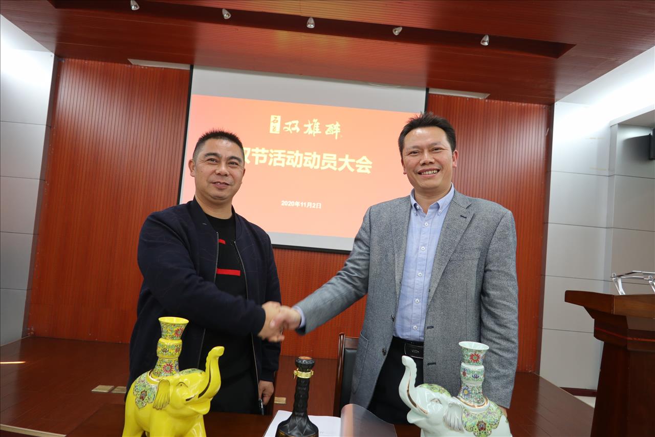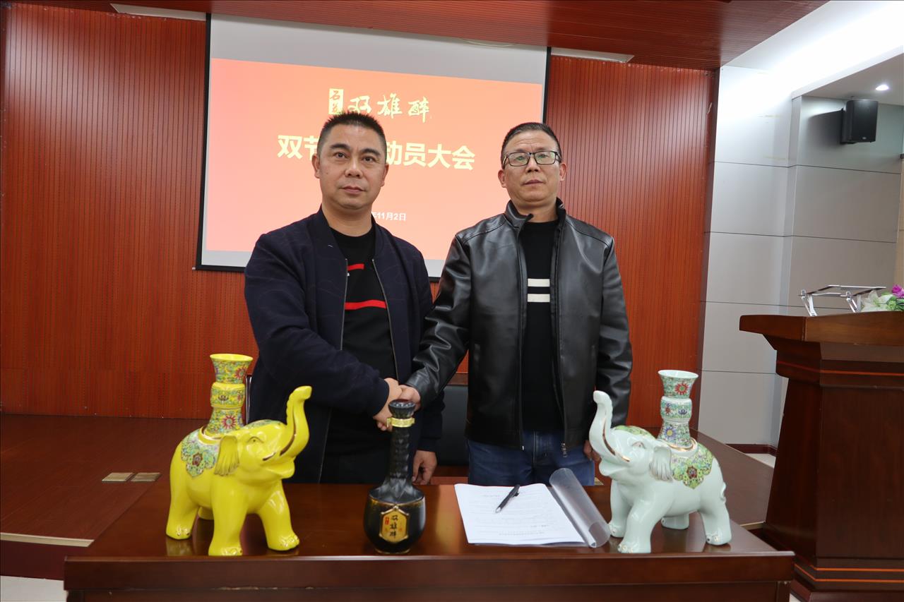 精兵集結(jié), 決勝旺季,2020年11月2日,雙雄醉健康酒業(yè)集結(jié)精兵強將和部分代理合伙人,在石酒產(chǎn)業(yè)園召開旺季動員大會。雙雄醉健康酒業(yè)總經(jīng)理鄭書軍、副總經(jīng)理楊建春等公司領(lǐng)導(dǎo)出席本次會議。
