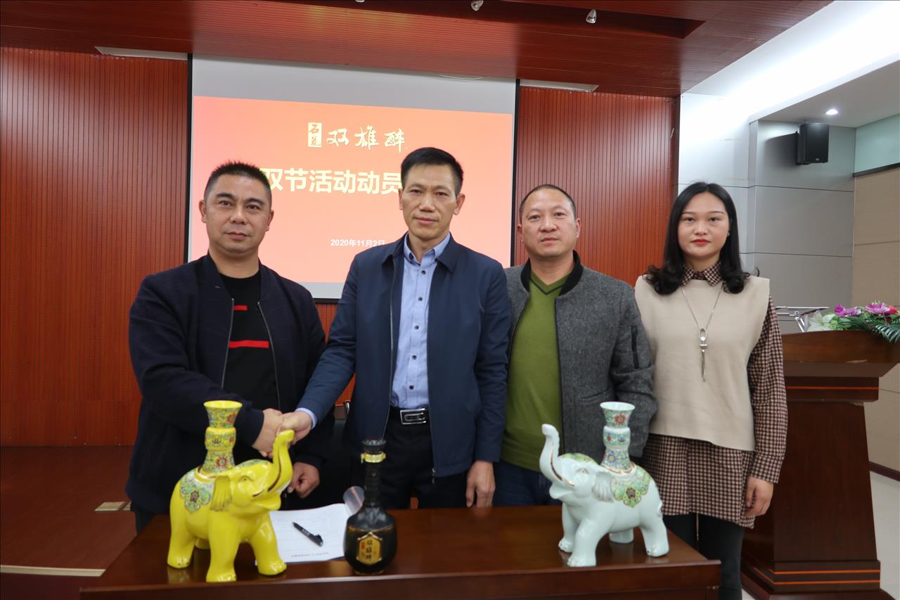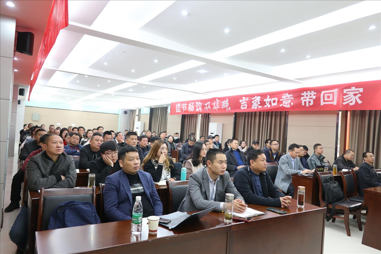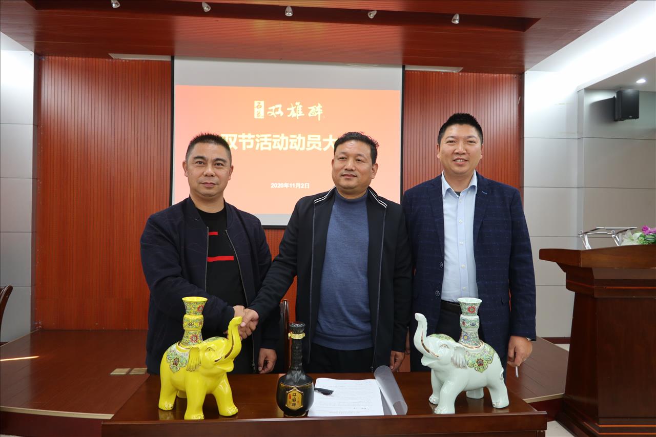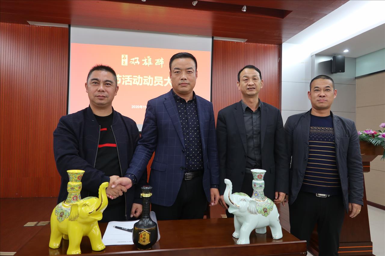 會議由雙雄醉健康酒業(yè)營銷總監(jiān)胡華俊主持,胡總宣講了雙節(jié)活動方案,雙雄醉雙節(jié)宣傳語“佳節(jié)暢飲雙雄醉,吉象如意帶回家”閃亮登場。大象自古就是靈獸,象諧音祥、相,寓意著吉祥如意、出將入相,靈象現(xiàn)世則天下太平。2020年是不平凡的一年,因為疫情,每一次親朋相聚,都倍感珍惜,2021年,團聚在一起,一起喝雙雄醉健康酒,過吉祥如意年,為回饋消費者,雙雄醉健康酒業(yè)特準備了數(shù)萬壇“吉象如意”酒和“萬象更新”酒投放市場,讓數(shù)萬家庭都能夠享受健康好酒、享受吉祥安康!太平有象!