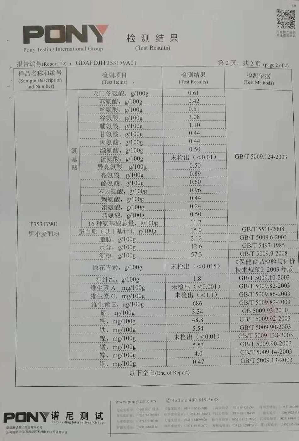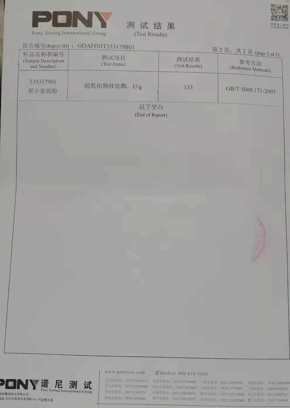 譜尼測試,益微SOD黑小麥面粉(超氧化物歧化酶)含量133u/g
