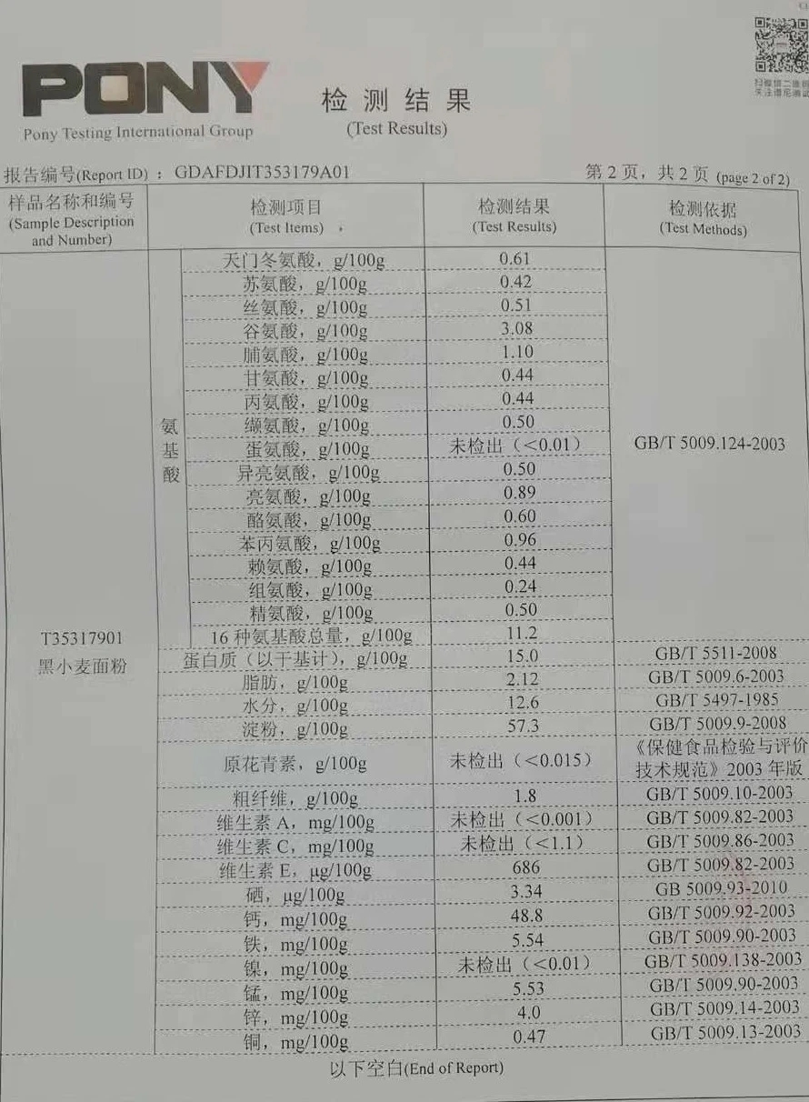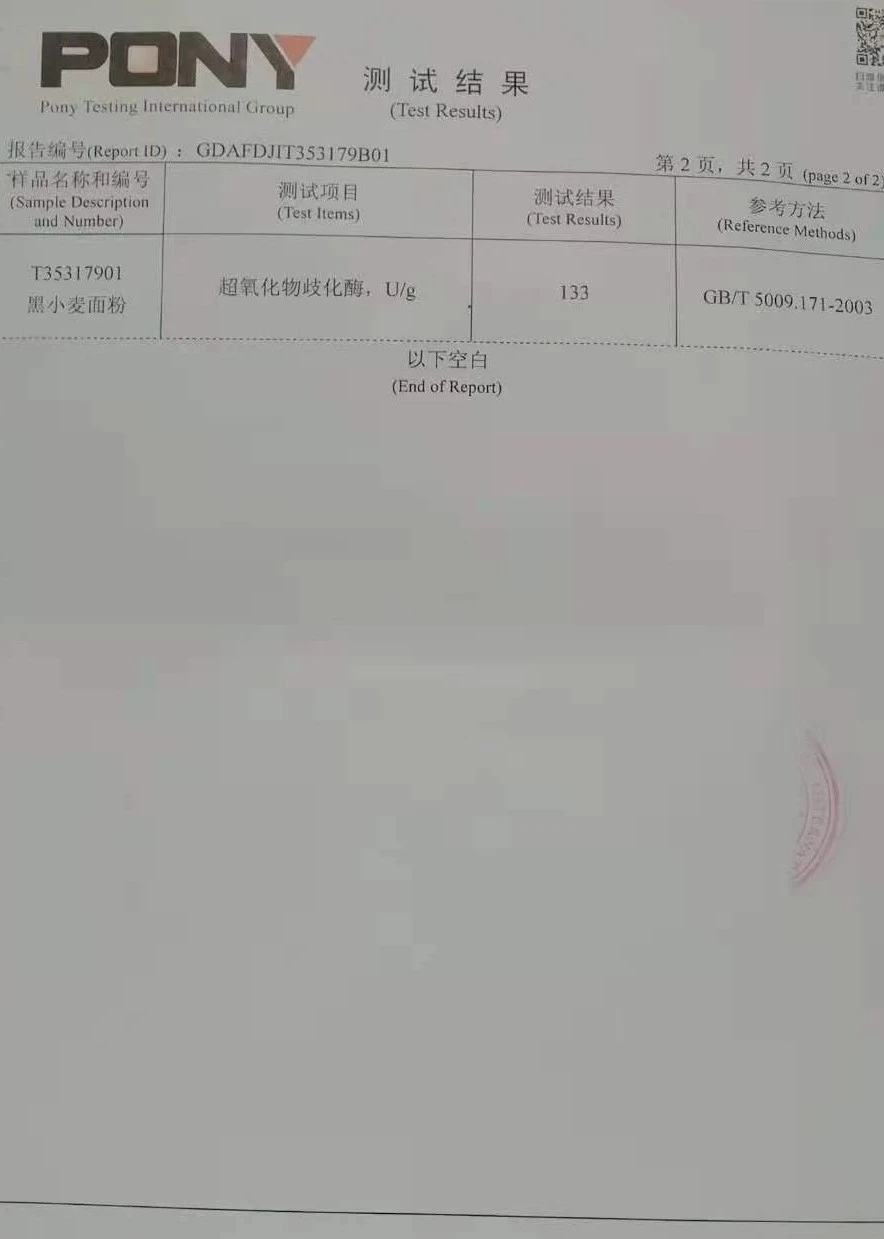 譜尼測試,益微SOD黑小麥面粉(超氧化物歧化酶)含量133u/g