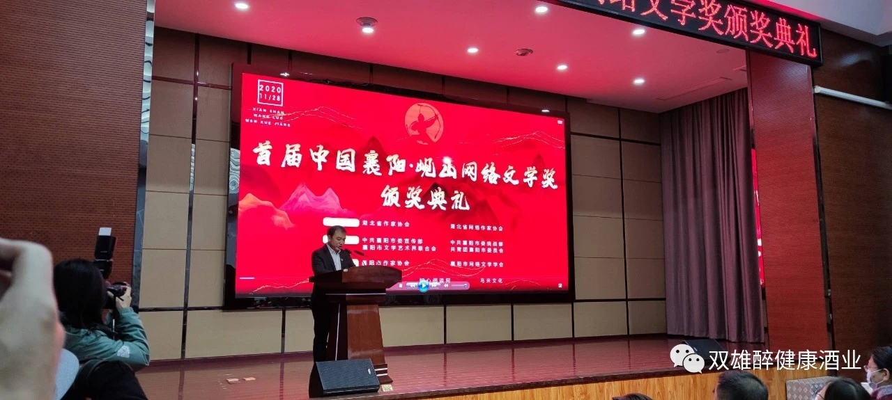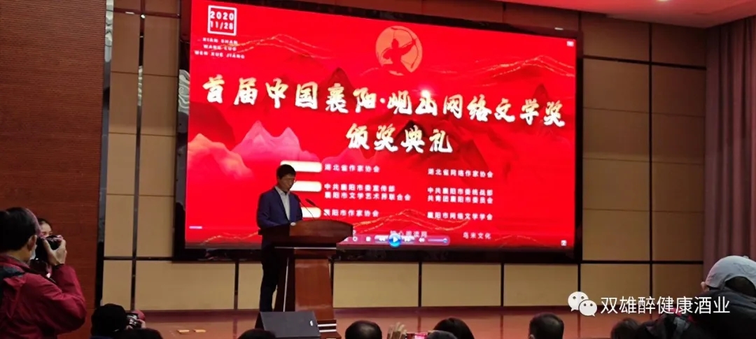11月28日,中國襄陽·峴山網(wǎng)絡(luò)文學(xué)獎頒獎典禮在襄陽市工會干校舉行。網(wǎng)絡(luò)文學(xué)大咖“匪我思存”、“吱吱”、“羅曉”、“滄溟水”、“心在流浪”等150余人參加頒獎典禮活動。仙俠經(jīng)典劇《仙劍奇?zhèn)b傳》作者“管平潮”、熱播劇《慶余年》作者“貓膩”、《誅仙》作者“蕭鼎”、《變臉武士》作者“跳舞”等來自全國的嘉賓通過線上進(jìn)行了互動并致賀。此次網(wǎng)絡(luò)文學(xué)頒獎活動是近年來襄陽規(guī)格最高、規(guī)模最大的一次文學(xué)盛會。雙雄醉健康酒業(yè)為此次活動提供贊助,雙雄醉健康酒Q300億為慶典指定用酒。