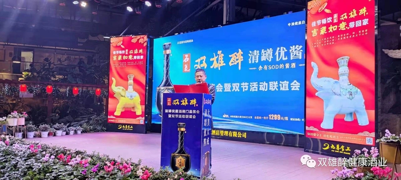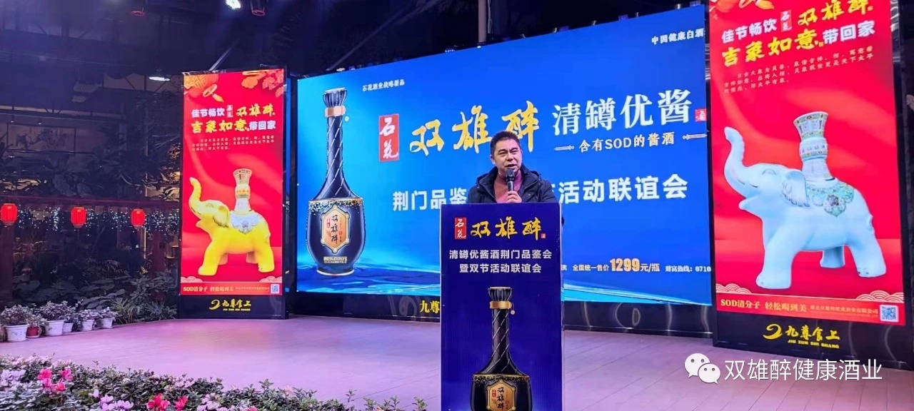 雙雄醉荊門合伙人楊家林先生致賀詞,楊總表示,雙雄醉是石花酒業(yè)的戰(zhàn)略新品,在荊門成功上市一年來,得到了荊門市場商家和消費(fèi)者的認(rèn)可,我們對雙雄醉酒信心十足、對雙雄醉酒業(yè)團(tuán)隊(duì)信心十足,清罇優(yōu)醬酒是含SOD的醬酒,產(chǎn)品有特色,品質(zhì)有保證,相信清罇優(yōu)醬酒一定能得到荊門人民的厚愛。