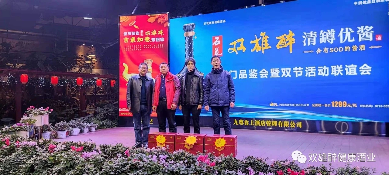 石花雙雄醉,輕松喝到美。2020年12月21日,雙雄醉清罇優(yōu)醬荊門品鑒會暨雙節(jié)活動聯(lián)誼會在九尊食上成功舉辦!荊門社會各界朋友、合作伙伴等200多人聚集一堂,品雙雄醉清罇優(yōu)醬酒,論財(cái)富共創(chuàng)共贏之道。在新春來臨之際,共同探索中國健康白酒的獨(dú)特魅力,感知雙雄醉的品牌深度。