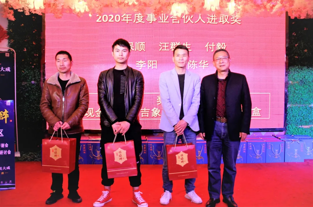 2020年,雙雄醉初試合伙人新模式,加盟合伙人多達(dá)600多家,銷售增長(zhǎng)35%以上,多個(gè)合伙人聯(lián)盟體和優(yōu)秀合伙人得到表彰,充分說(shuō)明合伙人模式收效顯著。鄭總再次深深感謝各位合伙人長(zhǎng)期以來(lái)為公司所付出的辛勤與努力。