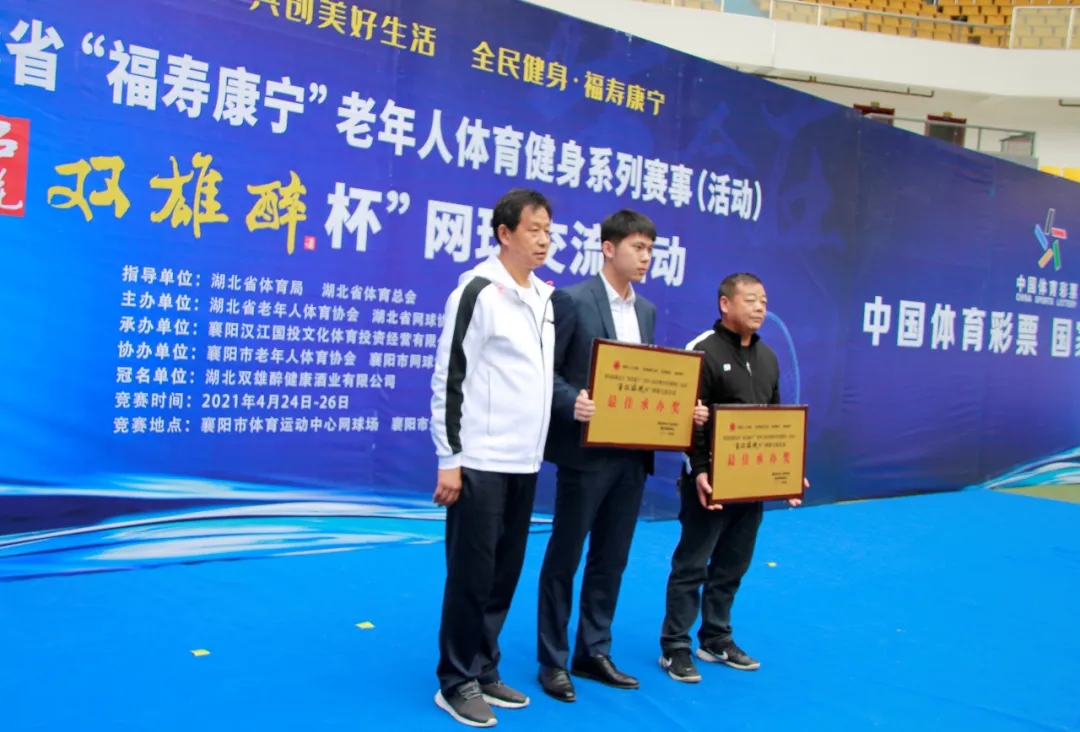 品雙雄醉酒,爭(zhēng)網(wǎng)球英雄。4月25日,第四屆湖北省“福壽康寧”老年人體育健身系列賽事“石花雙雄醉杯”網(wǎng)球交流活動(dòng)在襄陽(yáng)全民健身中心圓滿閉幕。省老年人體育協(xié)會(huì)常務(wù)副主席李紀(jì)剛、市文化和旅游局副局長(zhǎng)沈德松、市網(wǎng)球協(xié)會(huì)主席曾玉平等領(lǐng)導(dǎo)出席頒獎(jiǎng)儀式。