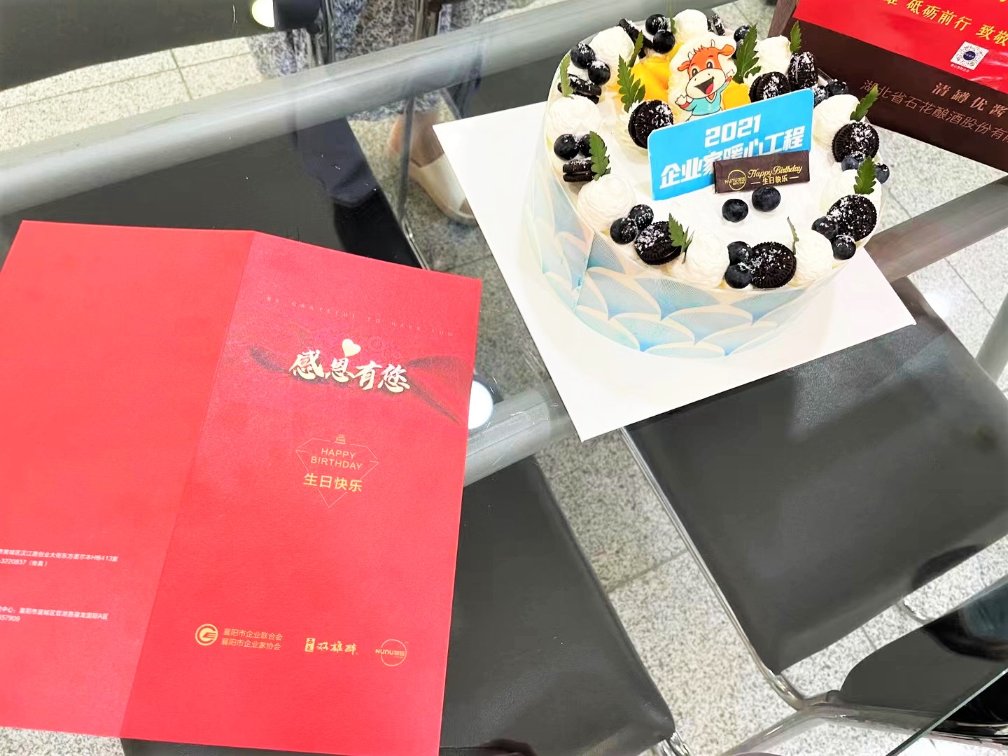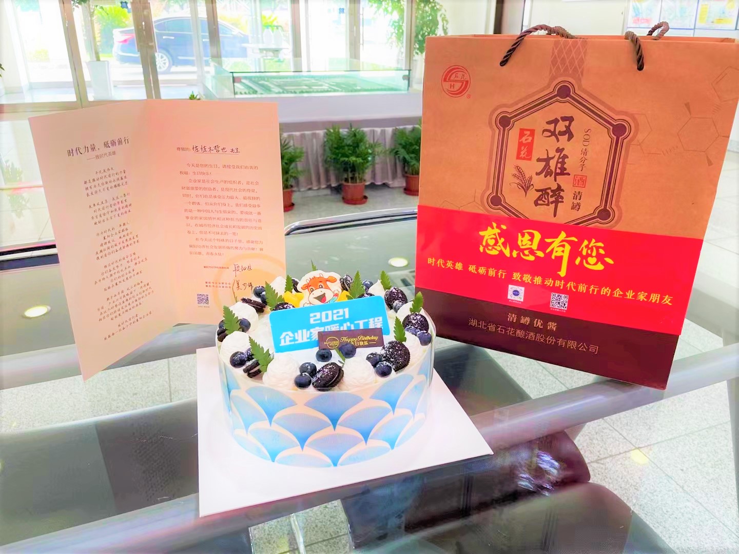 這是襄陽企聯(lián)和石花雙雄醉為襄陽優(yōu)秀企業(yè)家準(zhǔn)備的生日禮物,為企業(yè)家朋友在過生日當(dāng)天送上溫馨祝福,生日蛋糕、賀卡和雙雄醉頂級(jí)酒——清罇優(yōu)醬,感謝襄陽企業(yè)家為地方經(jīng)濟(jì)發(fā)展作出貢獻(xiàn)!