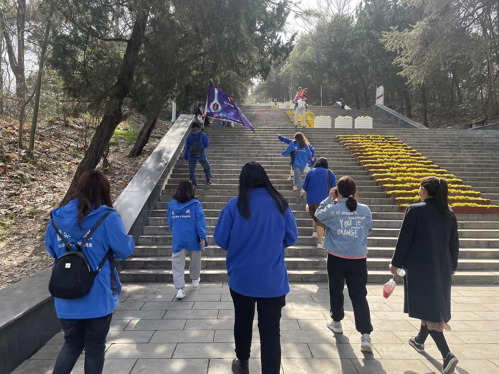陽春三月,萬物復(fù)蘇,3月8日下午兩點,大家相約烈士塔,進行一場與春天的約會,用健康、快樂的方式,慶祝國際婦女節(jié)的到來。大家熱情高漲,從烈士塔山腳向電視塔塔頂出發(fā),路途中歡聲笑語不停,大家盡享登山樂趣,一邊欣賞春日景色、一邊談天說地,時而你追我趕、時而駐足休息,呼吸著清新的空氣,沐浴著初春的溫暖陽光,愜意十足。
