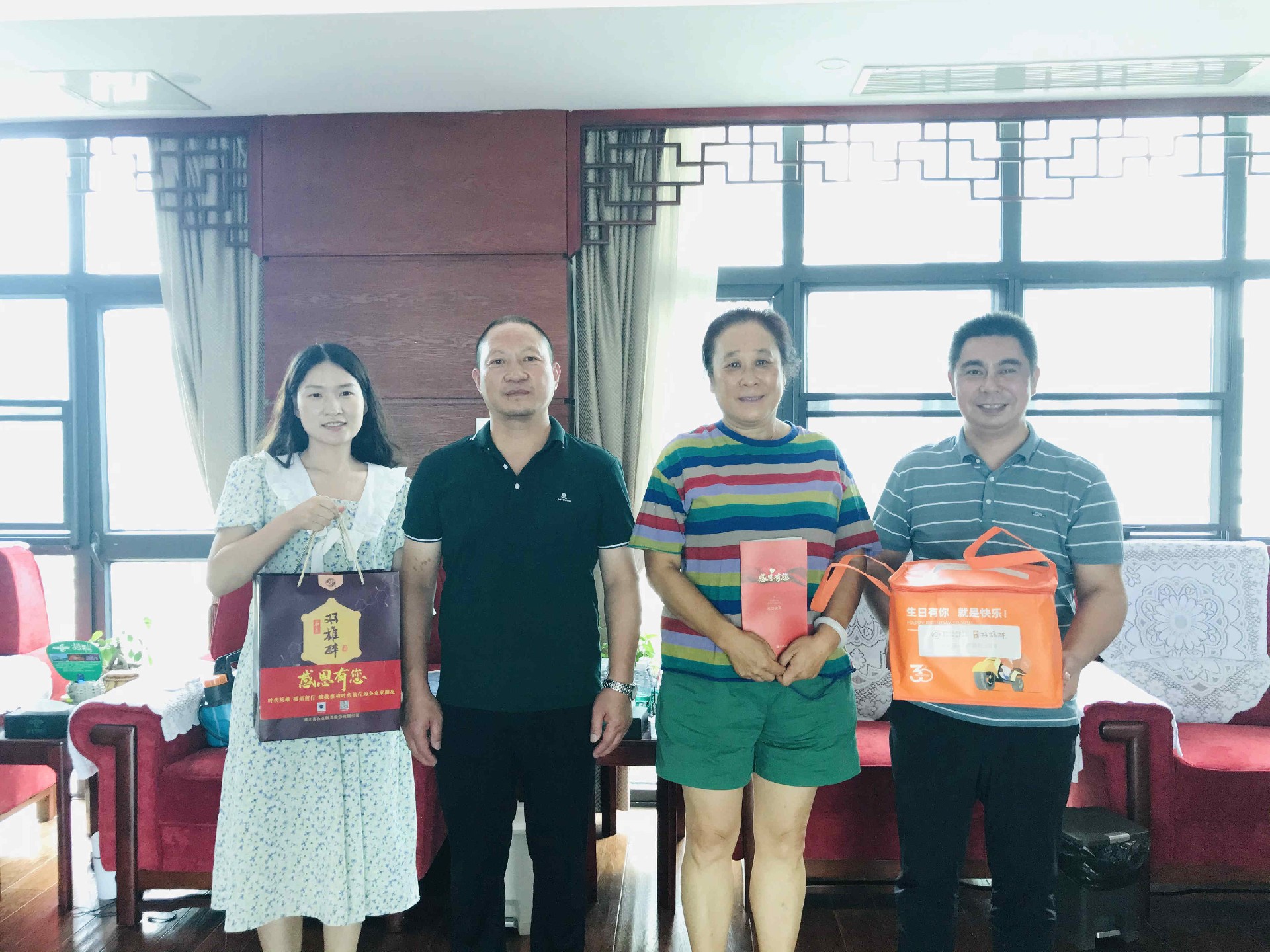 7月7日,襄陽企聯常務副會長兼秘書長趙樂成、大客戶服務部總監(jiān)李愛軍,帶著由襄陽市領導付勁松副市長、市經信局楊富杰局長和市企聯吳少偉會長簽名的《襄陽英雄 青春永駐》的生日賀卡、生日蛋糕和雙雄醉健康白酒,來到中興綠色技術湖北有限公司,為總經理陳佳送上生日祝福,感謝陳總為襄陽經濟社會高質量發(fā)展所做出的貢獻!