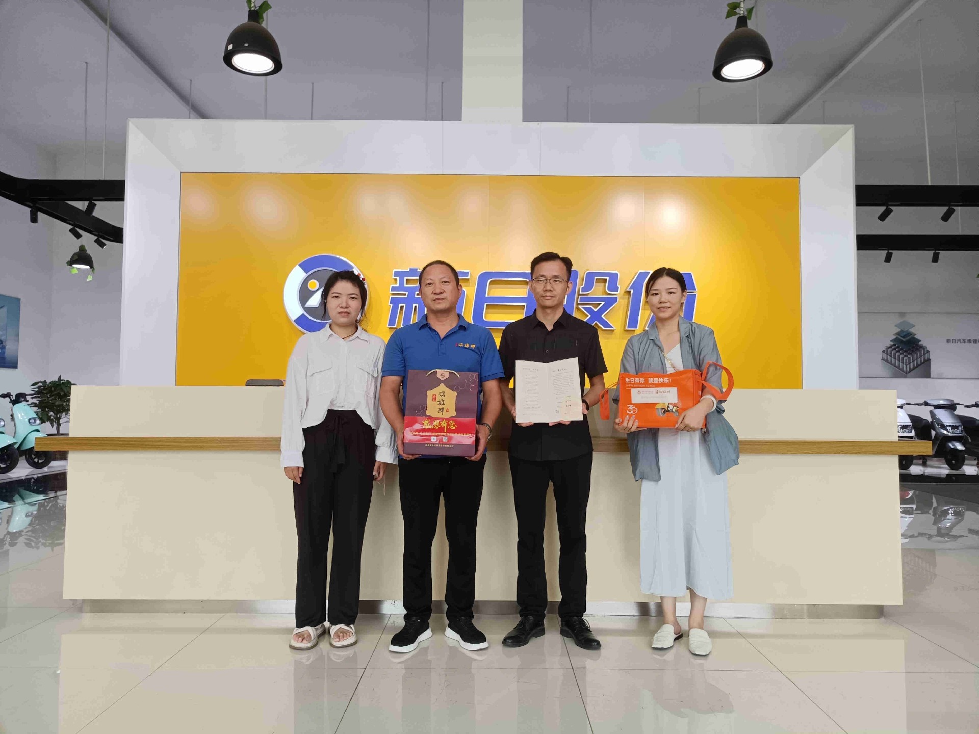 7月27日,得知這天正好是湖北新日電動車有限公司易必勇總經(jīng)理的生日,襄陽企聯(lián)代表、雙雄醉大客戶服務部總監(jiān)李愛軍,帶著由襄陽市領導付勁松副市長、市經(jīng)信局楊富杰局長和市企聯(lián)吳少偉會長簽名的《襄陽英雄 青春永駐》的賀卡、生日蛋糕以及雙雄醉健康白酒,來到湖北新日電動車有限公司,為易總送上生日祝福,感謝易總為推動襄陽經(jīng)濟發(fā)展作出的貢獻!