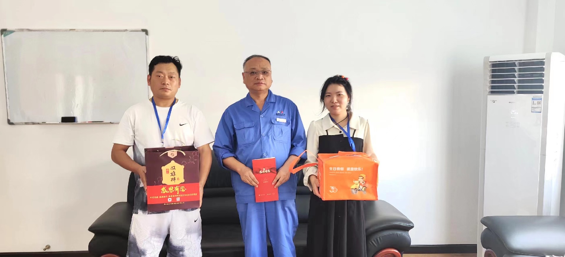 8月1日,這天是襄陽為興投資管理有限公司總經(jīng)理張明峰的生日,襄陽企聯(lián)常務(wù)副秘書長(zhǎng)申文寶、雙雄醉健康酒業(yè)大客戶服務(wù)部總監(jiān)李愛軍帶著由襄陽市領(lǐng)導(dǎo)付勁松副市長(zhǎng)、市經(jīng)信局楊富杰局長(zhǎng)和市企聯(lián)吳少偉會(huì)長(zhǎng)簽名的《襄陽英雄 青春永駐》的生日賀卡、生日蛋糕和雙雄醉SOD健康酒,來到為興公司,為過生日的張總送上生日蛋糕,并致以誠(chéng)摯的生日問候。