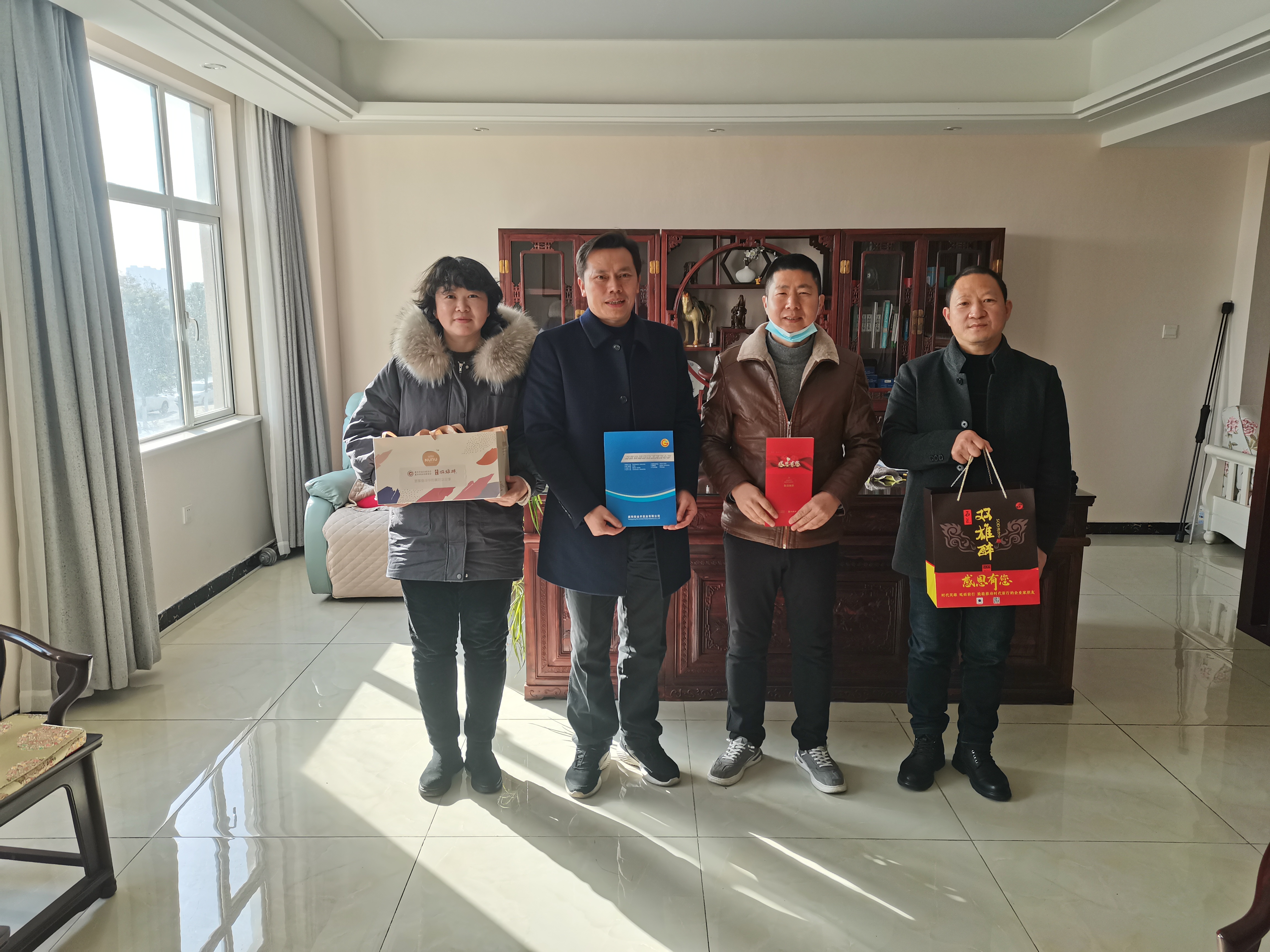 本周,襄陽(yáng)企聯(lián)工作人員和雙雄醉健康酒業(yè)總經(jīng)理鄭書(shū)軍、大客戶總監(jiān)李愛(ài)軍等,帶著由襄陽(yáng)市領(lǐng)導(dǎo)付勁松副市長(zhǎng)、市經(jīng)信局楊富杰局長(zhǎng)和市企聯(lián)吳少偉會(huì)長(zhǎng)簽名的《襄陽(yáng)英雄 青春永駐》的賀卡、生日蛋糕以及雙雄醉SOD365億健康白酒。分別為湖北雪美紡織股份有限公司黨委書(shū)記周斌、湖北追日電氣股份有限公司董事長(zhǎng)潘非、襄陽(yáng)市飛鐘糧食機(jī)械有限公司總經(jīng)理張翰威、襄陽(yáng)光瑞汽車零部件有限公司總經(jīng)理?xiàng)盍?、襄?yáng)新金開(kāi)泵業(yè)有限公司總經(jīng)理曾慶偉等過(guò)生日的企業(yè)家朋友送去暖心生日祝福,感謝企業(yè)家朋友們?yōu)?span style="margin: 0px; padding: 0px; border: 0px; font: inherit; vertical-align: baseline; box-sizing: border-box !important; outline: 0px; max-width: 100%; letter-spacing: 0.544px; text-align: left; overflow-wrap: break-word !important;">襄陽(yáng)經(jīng)濟(jì)發(fā)展作出的卓越貢獻(xiàn)!