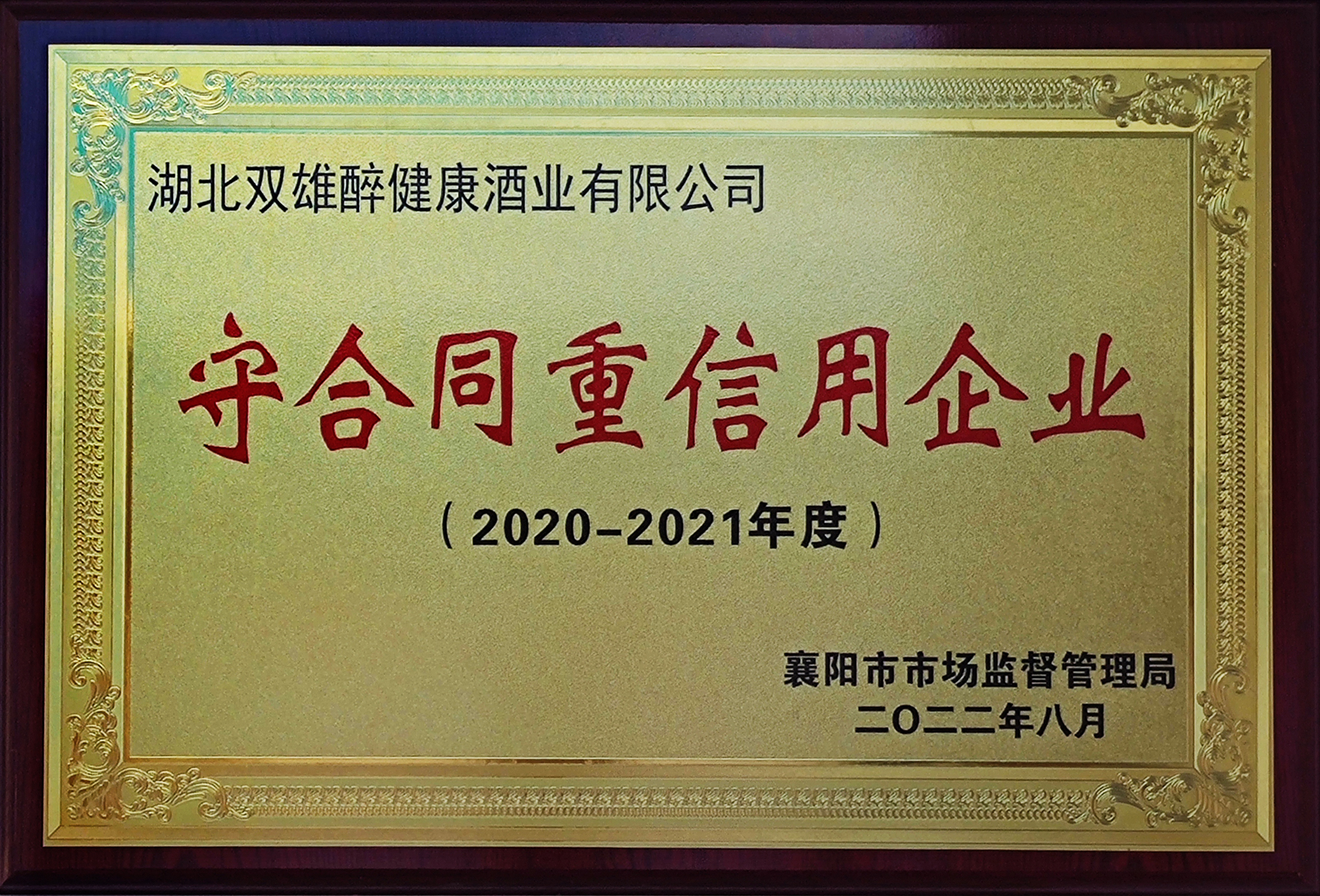 近期,湖北省第十六屆(2020—2021年度) 和襄陽(yáng)市(2020-2021年度)“守合同重信用”企業(yè)名單出爐,雙雄醉健康酒業(yè)憑借健全的質(zhì)量管理制度信用管理體系、良好的合同履約狀況和社會(huì)信譽(yù)榮獲省市兩級(jí)“守合同重信用”企業(yè)榮譽(yù)稱號(hào)。