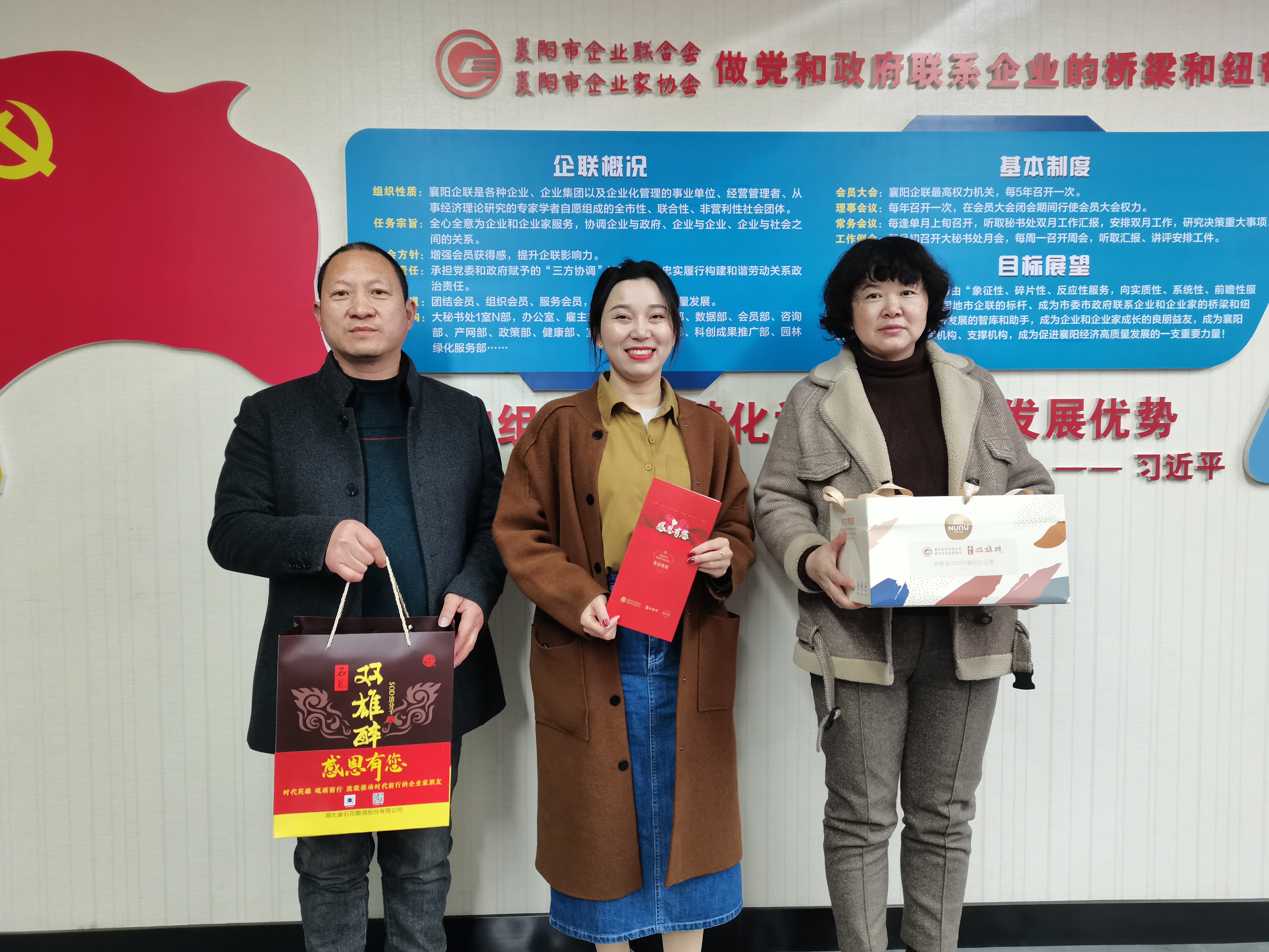 2月7日,襄陽企聯(lián)向湖北新華光信息材料有限公司黨委副書記、總經(jīng)理徐華峰(左三)禮送生日祝福。