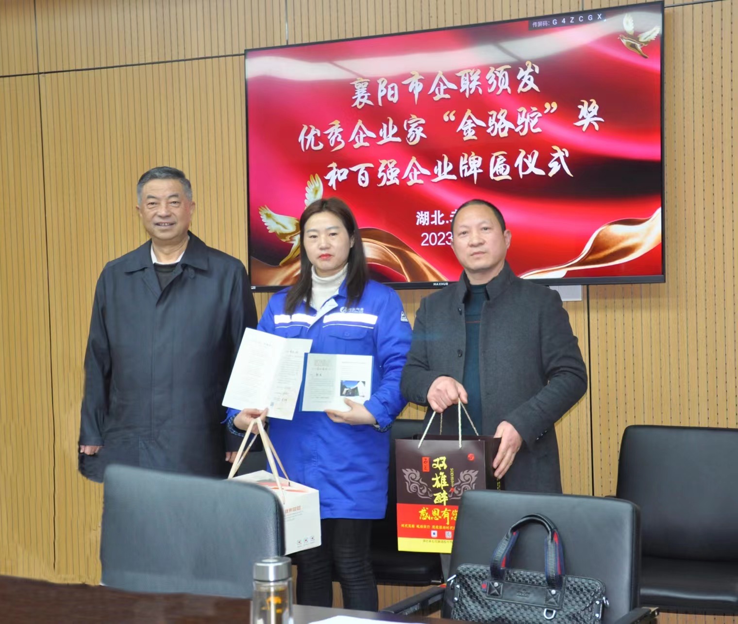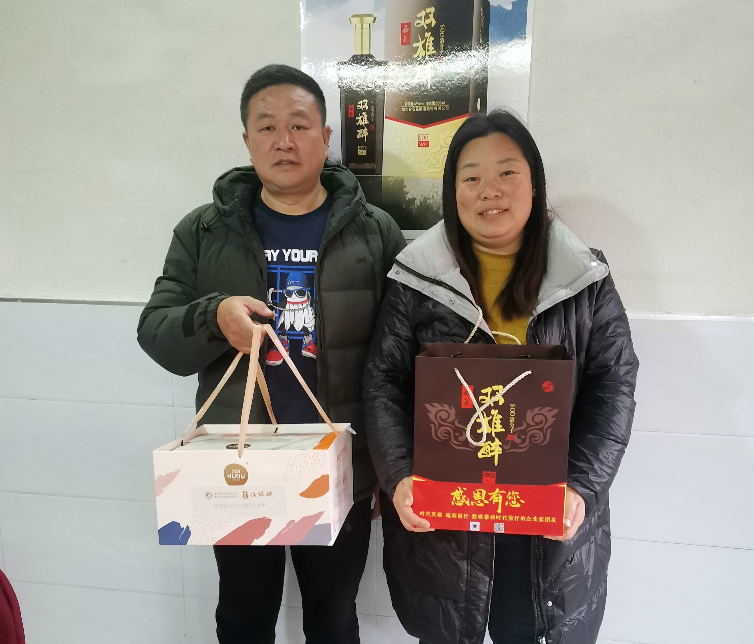 2月9日,襄陽企聯(lián)向老河口和遠(yuǎn)氣體有限公司總經(jīng)理郭巖(左二)禮送生日祝福。
