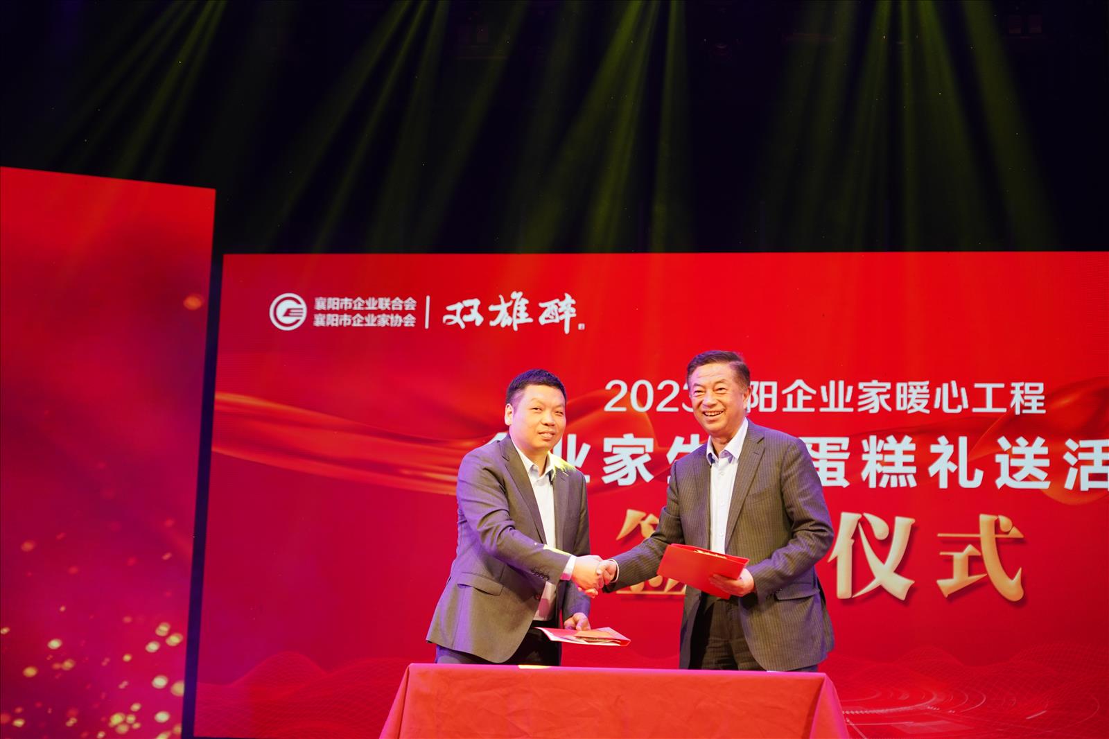為更進(jìn)一步營(yíng)造尊崇、關(guān)愛(ài)、支持企業(yè)家的濃厚氛圍,提高襄陽(yáng)企業(yè)家的獲得感和滿意度,4月27日下午,在襄陽(yáng)劇院舉辦的“2023五一勞動(dòng)者之歌暨襄陽(yáng)工業(yè)精神文化展演”大型活動(dòng)上,舉辦了2023“企業(yè)家暖心工程暨企業(yè)家生日蛋糕禮送活動(dòng)”簽約儀式?;顒?dòng)啟動(dòng),向社會(huì)傳達(dá)著關(guān)心關(guān)愛(ài)企業(yè)家和支持企業(yè)發(fā)展的明確信號(hào),一分愛(ài)心一片心意,溫暖一座城,香醉襄陽(yáng)城。