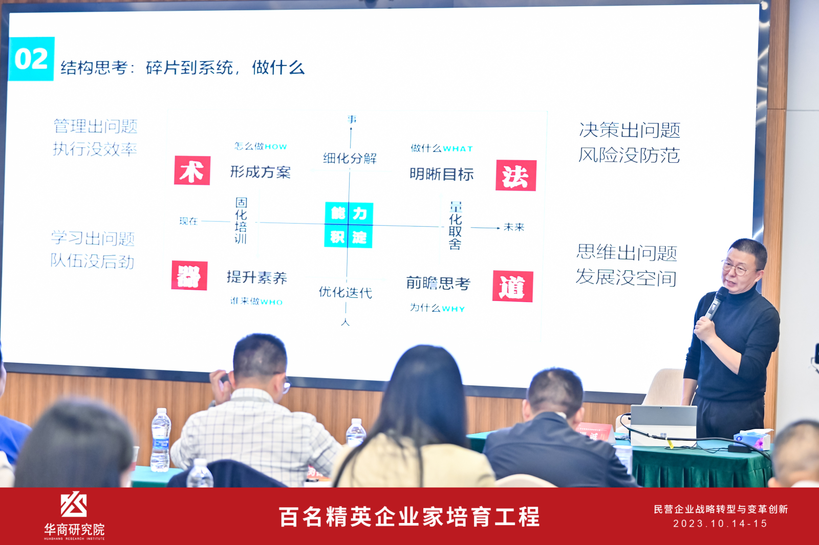 2023年10月14-15日,百名精英企業(yè)家培育工程名師課堂《民營(yíng)企業(yè)戰(zhàn)略轉(zhuǎn)型與變革創(chuàng)新》在洪山大廈開(kāi)課,石花酒業(yè)副總經(jīng)理、石花雙雄醉總經(jīng)理鄭書(shū)軍與同學(xué)們一起聆聽(tīng)著名企業(yè)戰(zhàn)略管理專(zhuān)家潘誠(chéng)老師帶來(lái)戰(zhàn)略轉(zhuǎn)型大課。